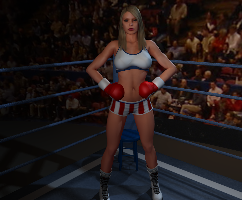 My very first poser render! I’m really new at this and have been using various purchases from Renderosity. Going to upload a full boxing match, starting with this: The heroine of the match: Liberty Lane, undefeated champion who will soon be facing off with her arch rival, Vanity Vale.