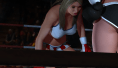 The once-valiant champion, Liberty Lane, struggles to remain on her feet. Her spirit is so crushed, she almost looks up pleadingly at her tormenter. Liberty, who once sought to put an end to her rival’s trash-talking, now hopes Vanity shows some mercy.