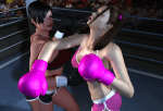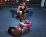 - “THE WINNER BY KNOCKOUT IN THE 2ND ROUND AND STILL FOXY BOXING CHAMPION… VANITY VALE!!” The champion holds on to the coveted belt, while Candy Carpenter writhes on the mat, whimpering in pain.