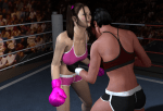 - “And her opponent, fighting out of the red corner, FOXY BOXING CHAMPION OF THE WORLD, VANITY VALE!!” The crowd boos down the new champion, still upset with how she treated the last champion.