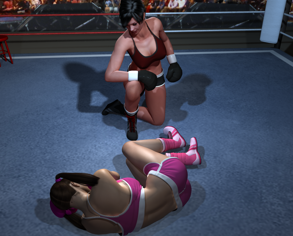As the count continues, Vanity leans down to taunt the fallen Candy. “Hey little girl, look on the bright side. I didn’t mess up that cute little face of yours! And I flattened your belly for you.” SIX… SEVEN… EIGHT… NINE… TEN! DING! DING! ← Previous Next →