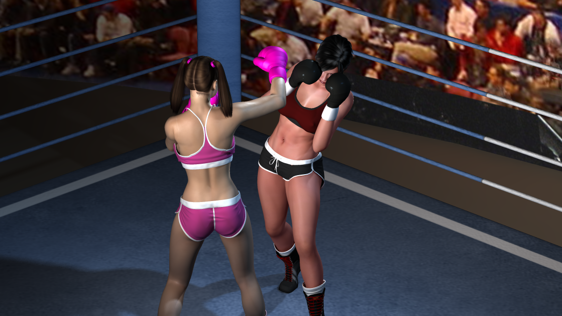 Candy finds it difficult to get a solid hit in, as Vale nimbly dances around her fists. She moves side to side, evading her opponents blows throughout the round. DING! The first round ends! ← Previous Next →