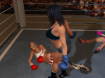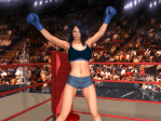 - Liberty Lane is on the canvas! She looks disoriented as the count begins. ONE… TWO… THREE… Liberty looks around the crowd and tries to pull herself up. FOUR… FIVE… SIX… Ivanna Payne looks down at her rival and shouts down at her, “Get up, champ! I’m not done with you! Get up!” SEVEN… EIGHT… DING! OH! Liberty Lane is saved by the bell! Ivanna walks back to her corner saying, “Ahh… this isn’t over…” Liberty staggers over to her own corner to recuperate.
