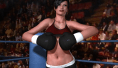 The champ struts back to her corner, satisfied with the message she’s sent. She stands in her corner, cocky and proud, and then pulls a move no one is expecting. She shouts out at Ivanna: “Let’s make this interesting… you got the guts to continue this fight topless, Payne?” Then, Vanity Vale begins to remove her top, to the roar of the crowd!