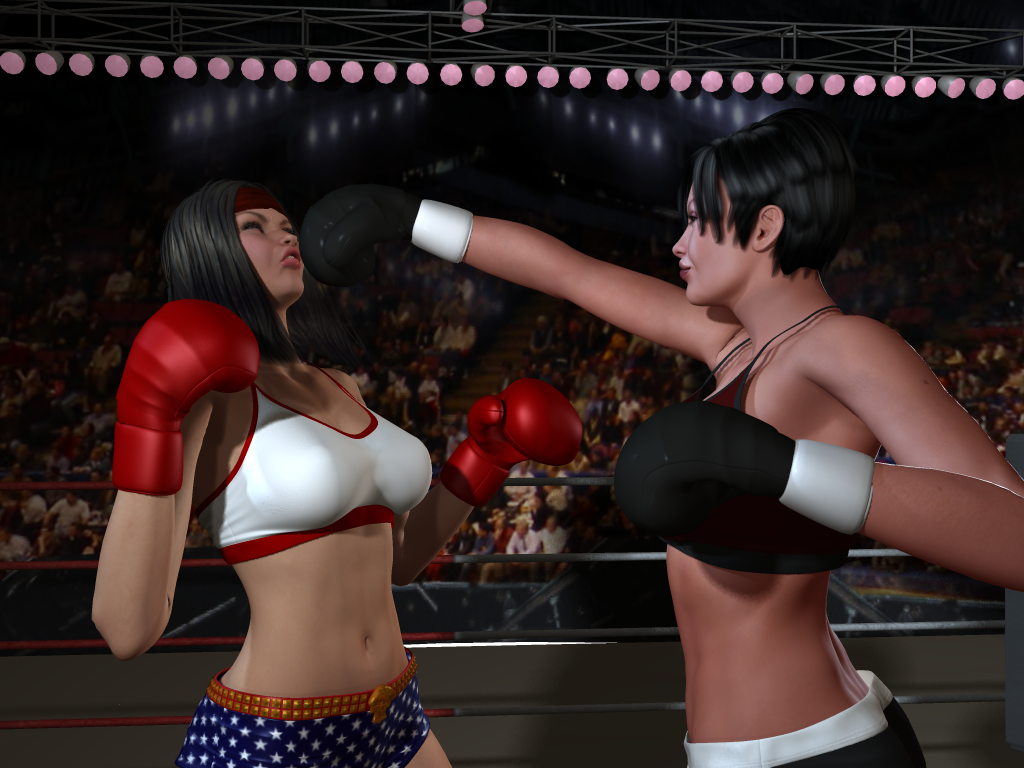DING! And the 3rd round begins! Vanity comes out quick, striking Raquel head-on. Raquel absorbs the blows, as well a few more to follow. But, she keeps her energy up, while Vanity slows down. ← Previous Next →