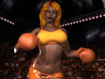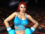 - . . .closing it out with a jaw-rattling left that shook her opponent visibly. The crowd was up and cheering for the gorgeous rehead, and she was all-smiles as she returned to her corner after the bell. Round one to the white girl!