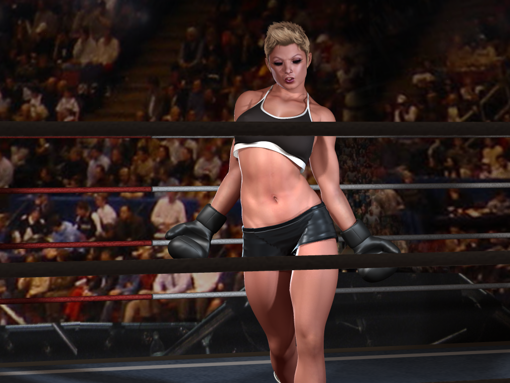 The crowd was wild with excitement! Tonight was the match they’d been waiting weeks for and now it was about to begin. The lights dimmed and the announcement was made: “LADIES AND GENTLEMEN… WELCOME TO TONIGHT’S MAIN EVENT! FIRST, FIGHTING OUT OF THE RED CORNER… THE CHALLENGER FOR THE FOXY BOXING CHAMPIONSHIP BELT… RAYNE!!” Rayne walked up to the arena, entered the ring, and strutted around as if she owned it. She shouted out, “Watch me beat your champion to a bloody pulp tonight!”
