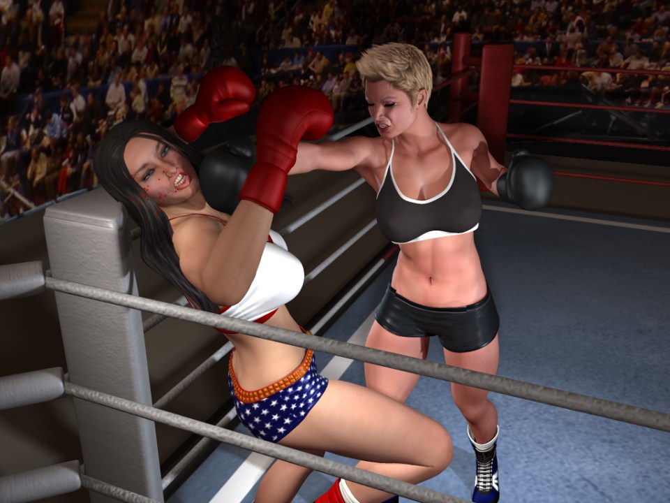 The challenger maneuvered her prey into a corner and pounded into her with no mercy. She connected with blow after blow, as Raquel’s defense fell to shreds. The crowd gasped at seeing their heroine treated like a punching bag. And then, finally, they saw their champ fall.