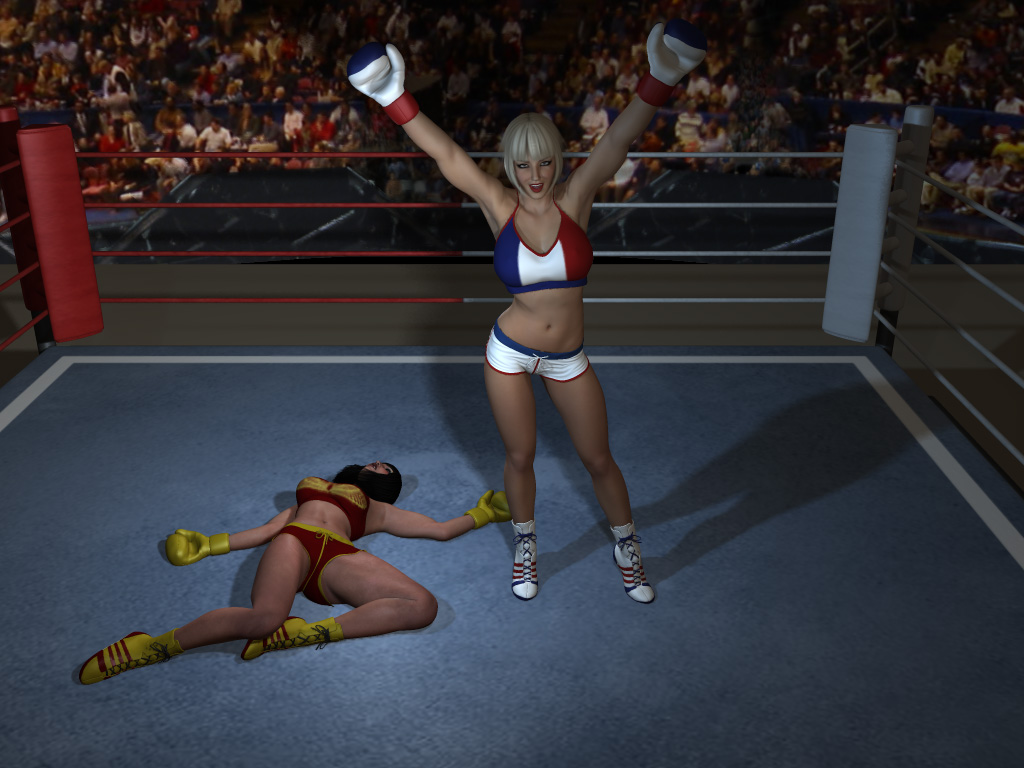 The count reached 10 and Seshafi was counted out. Clarisse smiled wide as she raised her arms in victory. ← Previous Next →