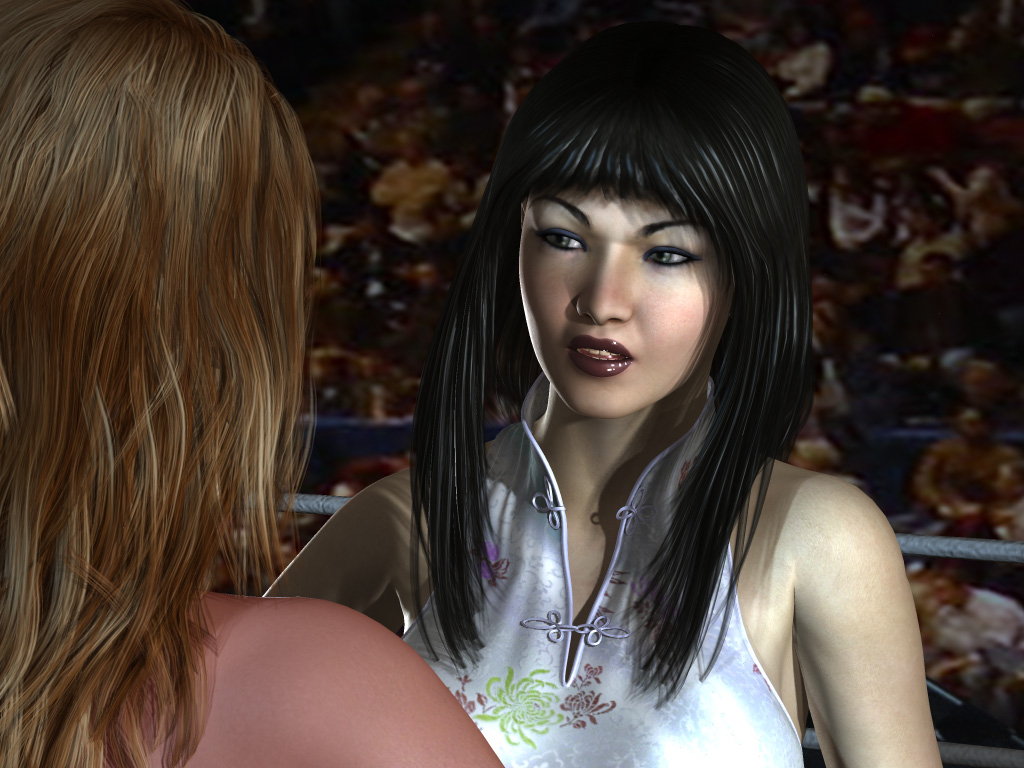 Akira Asuka thought long and hard as the crowd cheered her on. Then she spoke. “Ok. I will accept your challenge. I will not quit the tournament. If I win, I will decided if I stay in or let Liberty take my place. And if you win, you will challenge her in a special bikini match. If Liberty and the judges agree, then we will fight.”