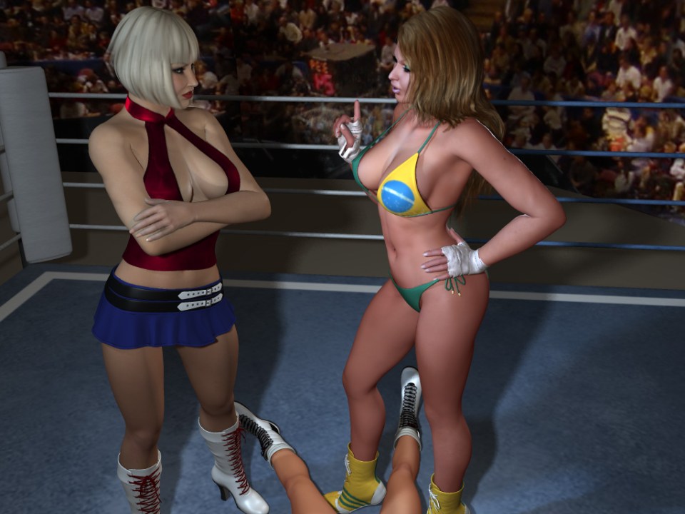 Before Clarisse could torment Liberty further, Luiza Lima stepped in to stop her. “No, no, menina! You do not get to gloat over Liberty Lane. I’m the one who beat her, not you! And I needed no help. You have no reason to be here. She scared you… but not me. Now, I beat YOU to be the best in the world.” Clarisse just looked at her new rival with a smug look. “Okay, mon amie… the fans cheered you on to victory. Next time, we see who they cheer the most. But I will CRUSH you.” Both women stood over Liberty Lane’s defeated body and glared at each other for a few moments before exiting the ring. Both women would meet for the final match of the tournament.