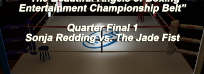 - “Ladies and gentlemen, welcome to our Main Event tonight: the first quarter-final in the Tournament to become the first Beautiful Angels of Boxing Entertainment Champion! First, fighting out of the blue corner… from Minneapolis, MN, please welcome ‘The Next Big Thing’ SONJA REDDING!!” The fans cheered loudly for Redding. They had seen her victorious many times and now hoped she’d add another opponent to her list as she made her way through to the quarter finals.