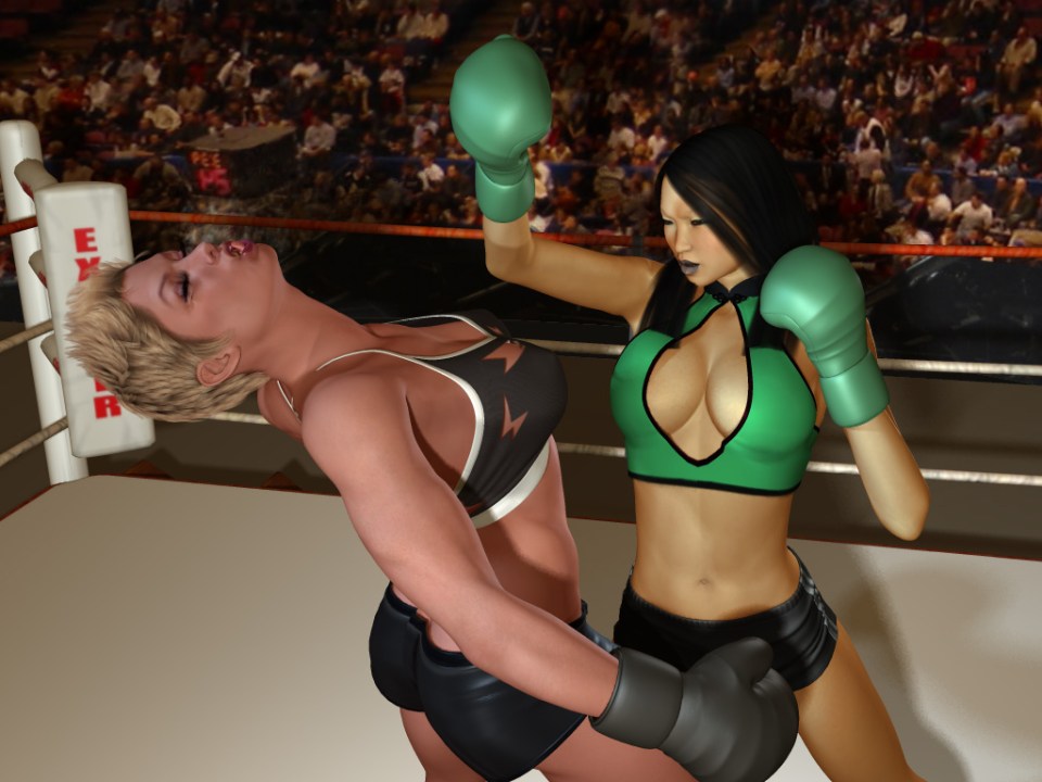 The Jade Fist then jumped up with a swift and powerful uppercut that smashed into Rayne’s jaw! The powerful Rayne took the sharp blow and became angry with her smaller opponent. Rayne moved in close to crush her opponent, but Jade jumped to the side…