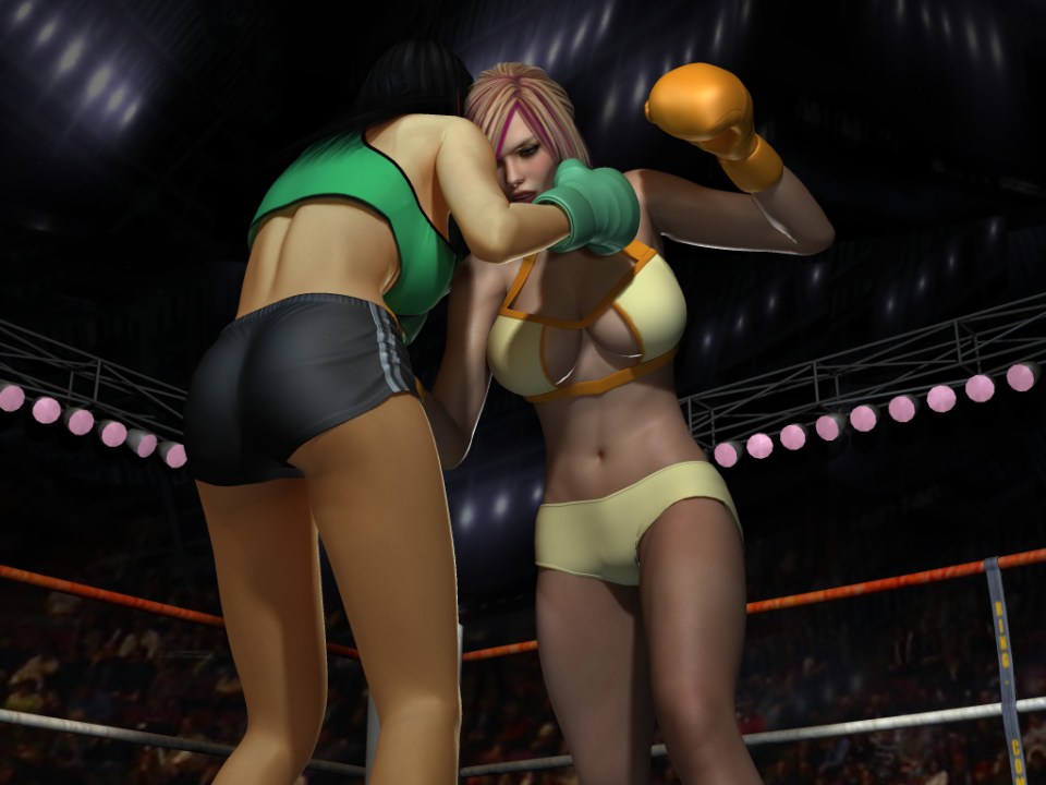 DING! And the bell rang to start the match! Both women flew toward the center of the ring, dancing around each other looking for an opening. After a few testing jabs, Lana rushed in close and gutted the Jade Fist with a powerful left glove. Lana then proceeded to crowd around her opponent, not letting her out of her punching range.