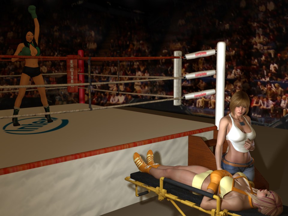 And then, as silence again filled the arena, Lana was removed from the ring and placed on a gurney. Ashley Powers accompanied Lana Sinclair as she was wheeled out of the arena. As Lana passed the fans, they stood and applauded her performance. Remaining in the ring, the new champion, The Jade Fist, looked down at the scene and then stood tall in victory. She had destroyed Lana Sinclair and had become a champion.