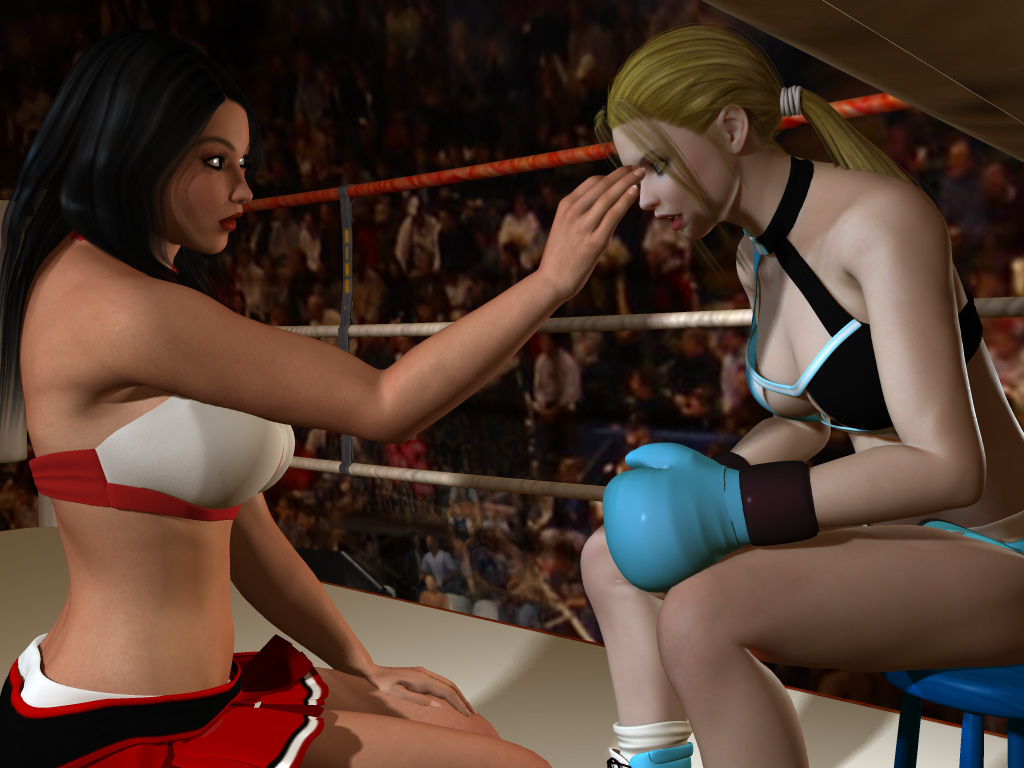 Amber, meanwhile, was tended to by Cheryl. The Bouncin’ Bombshell checked on her friend’s condition and doubted if she should continue the match. “Yes!” Amber replied. “I can make it. Please, Cheryl, whatever you do, do NOT stop the match. I can make it… all I have to do is last until the end of the next round. Then, I win. I win!” Cheryl looked at her friend. She wasn’t quite sure, but respected Amber’s wish. DING! And then, the third round began.