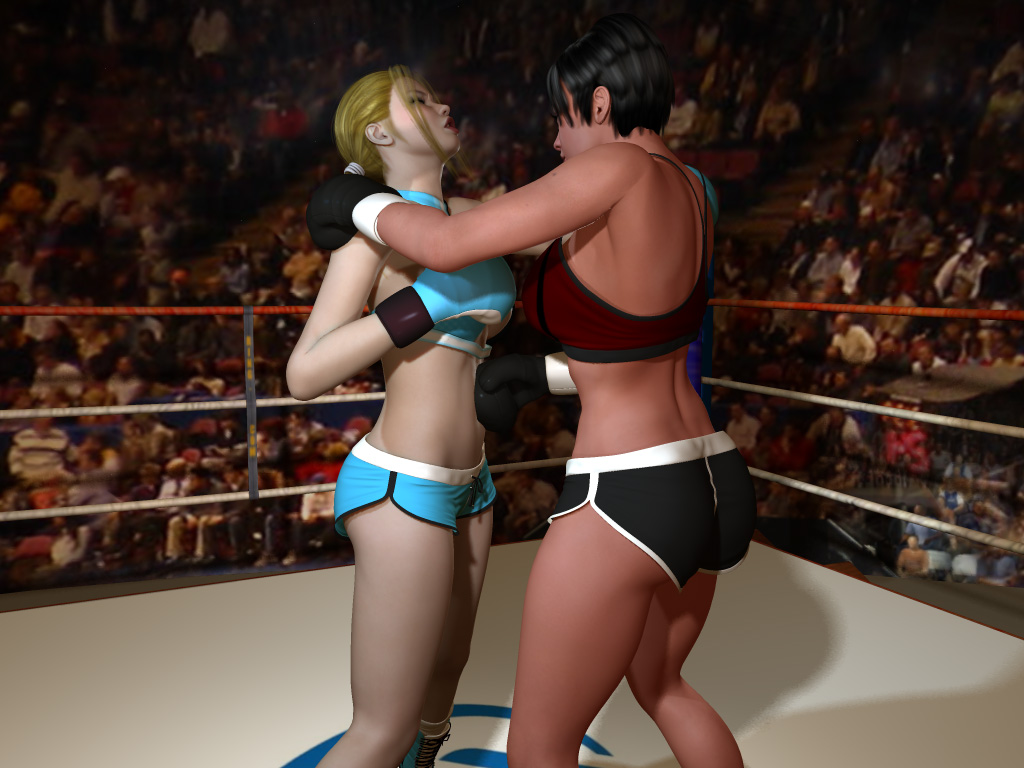 As soon as the bell rang, Vanity continued her demolition of Amber Skye. Amber tried to stay out of her range, but Vanity kept her close, pounding her stomach with vicious fists. ← Previous Next →