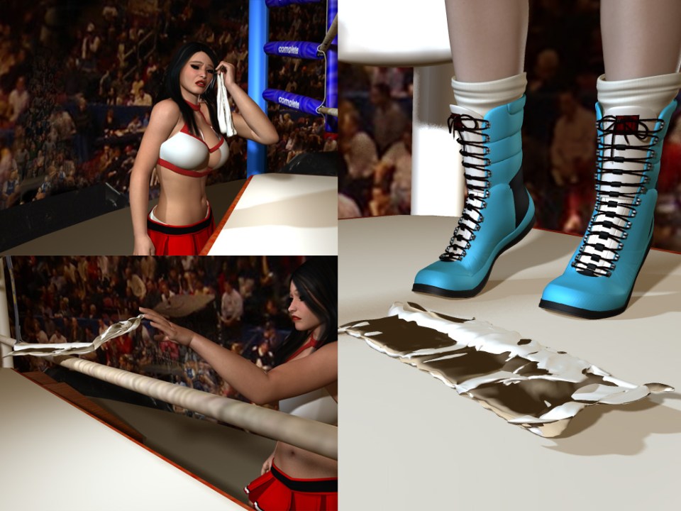 Cheryl was conflicted. Amber just had to last until the end of the round, but her career was in danger at the fists of Vanity Vale. With a heavy heart, Cheryl made a very difficult call and threw in the towel which landed clean and flat at Amber’s feet. DING! DING! And with seconds left in the round, the match was over.