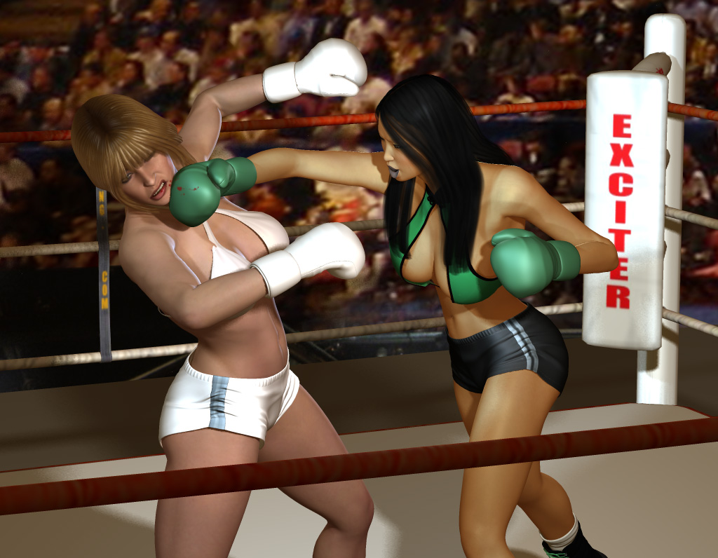 The Championship fight between B.A.B.E. champion, The Jade Fist, and challenger, Ashley Powers, and been a back-and-forth battle. Both women had gone through 4 rounds, pummeling each other around the ring, not giving an inch. But finally, in this 5th round, the Jade Fist had wrested control of the match from her challenger and began to dominate her. She pounded into Powers, attacking her head with ferocity.