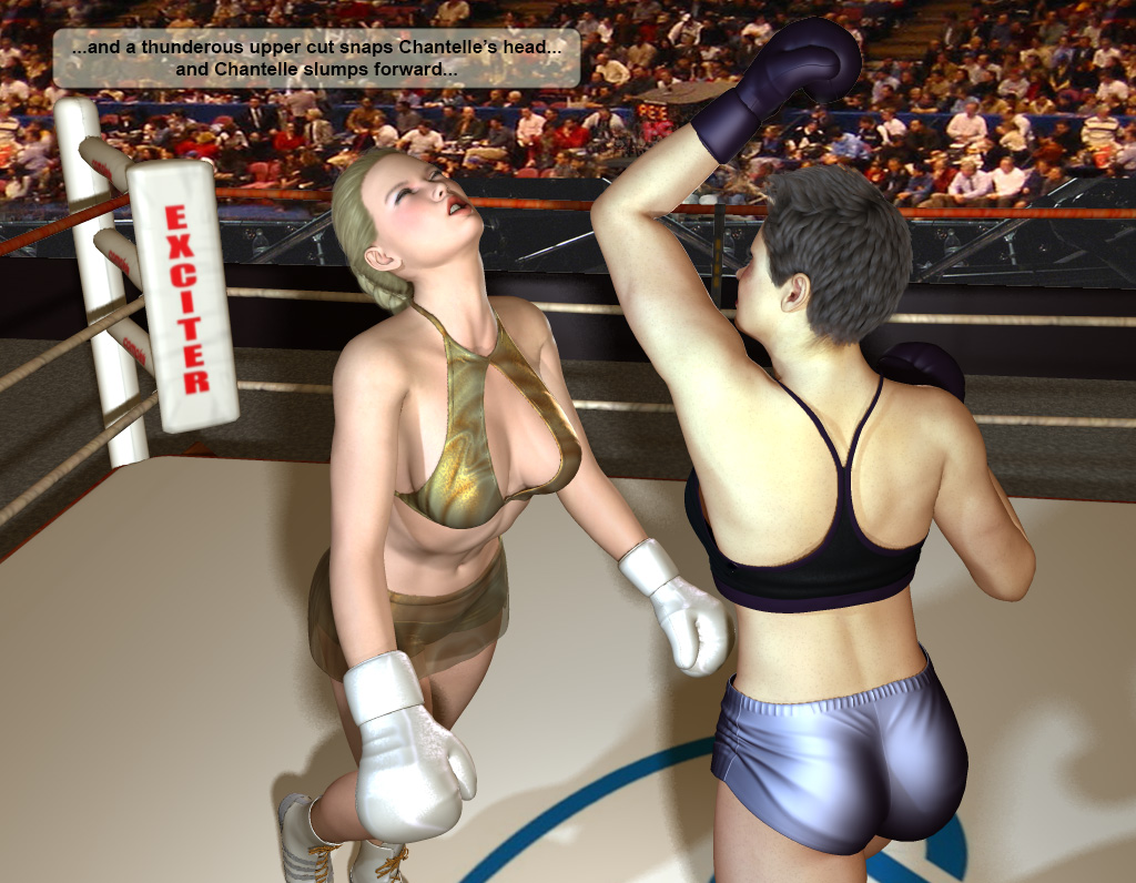 and a thunderous upper cut snaps Chantelle’s head . . . and Chantelle slumps forward . . .”