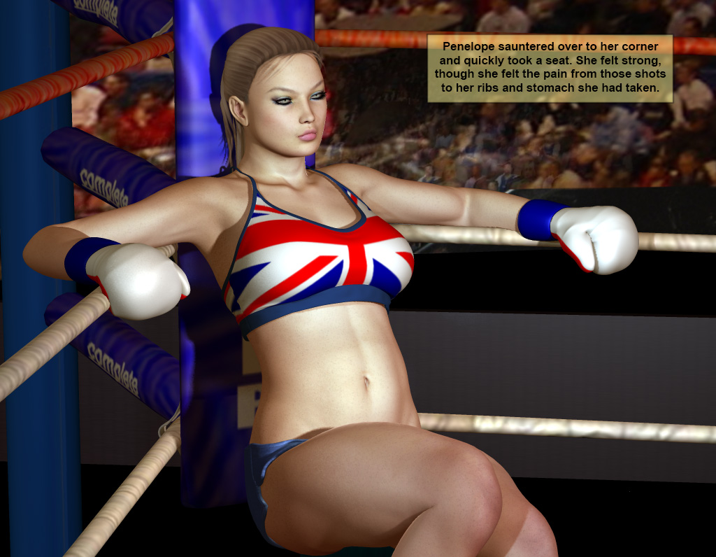 Penelope sauntered over to her corner and quickly took a seat. She felt strong, though she felt the pain from those shots to her ribs and stomach she had taken.