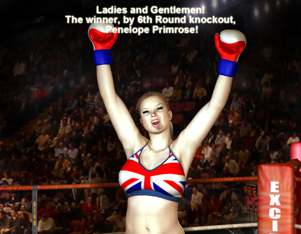 “Ladies and Gentlemen! The winner, by 6th Round knockout, Penelope Primrose!”