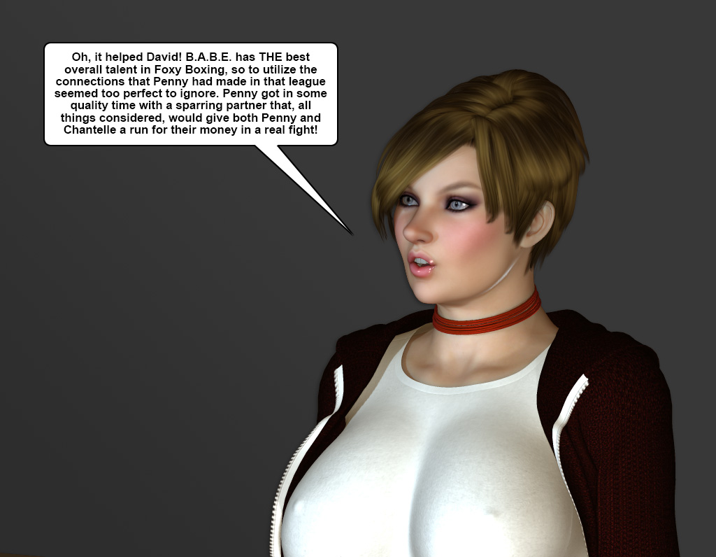 “Oh, it helped David! B.A.B.E. has THE best overall talent in Foxing Boxing, so to utilize the connections that Penny had made in that league seemed too perfect to ignore. Penny got in some quality time with a sparring partner that, all things considered, would give both Penny and Chantelle a run for their money in a real fight!”