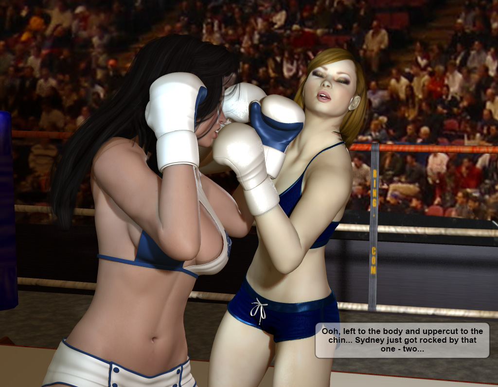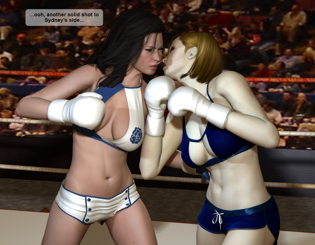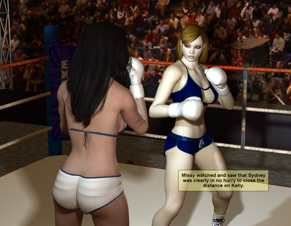 “And there’s the bell . . . and this time Kelly comes out fast . . . Sydney meets her and fires a hook and misses . . counter hook by Kelly, and another to the body makes Sydney wince . . . Sydney fires a left and right, both catch air . . . Kelly misses with a jab . . . Sydney connects with a jab of her own . . .”
