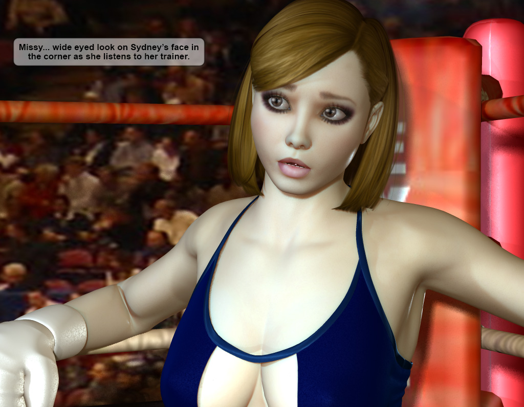 Penelope switched on the T.V. in the dressing room and muted it. There was no need to have the volume on, as the din of the arena was so heavy it drowned out the voices of Giles Watt and Missy Eddington coming from the TV as they talked about the Main Event which was just getting underway. Penny looked up at the screen and watched Sydney Smith walking down the ramp to the ring, Mac right behind her. “She looks terrified!” Penelope thought, “Maybe she’ll get what’s coming to her . . . or maybe . . .” Penelope was at a quandary. She loved watching Ashley Powers knock out Ivanna Payne, as Penelope loved watching those who had beaten her getting their own piece of humble pie, and she thought Sydney could use some of that. But as she remembered all the hype that had been heaped on Kelly Fairchild in the run up to this bout the envy in her could not abide and she began looking anew at the young, pale gaunt fighter walking to ring. “Well she beat me, she could beat Fairchild too I suppose . . .”