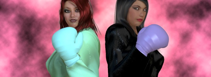 In the other corner stands the brunette vixen, Sierra Satin, who isn’t about to let her prize get taken from her.